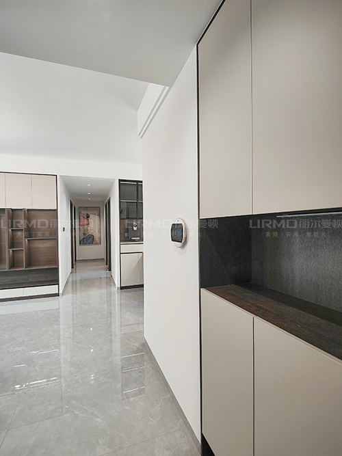 入戶玄關(guān)柜,可作為鞋柜和收納柜,實(shí)木柜體搭配PET膚感柜門(mén),質(zhì)感超不錯(cuò)。