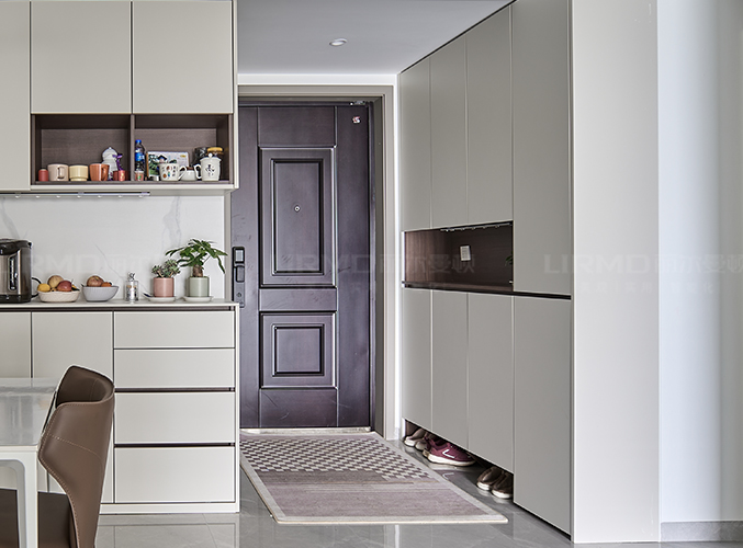 柜體采用巴斯特榆木搭配象牙灰柜門,整體簡(jiǎn)約干凈,底部鏤空設(shè)計(jì),方便放置鞋子。