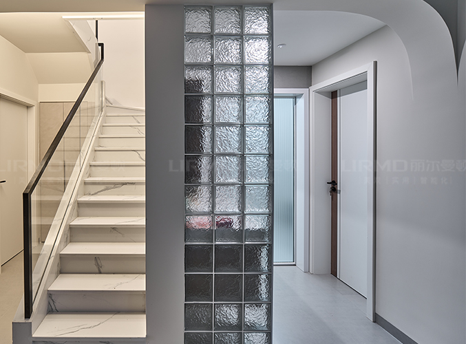 原墻體拆除用玻璃磚做隔斷,透光不透人,具有設(shè)計感。