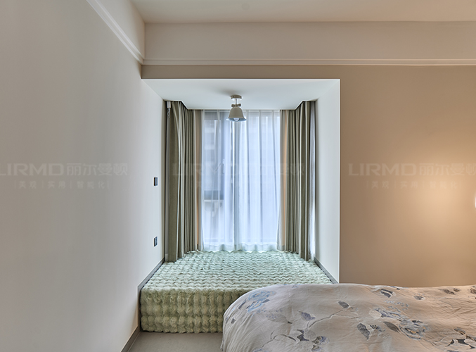 飄窗改造后可以做成休閑區(qū),床頭燈以及吊燈極具設(shè)計感,傳遞出柔和自然的感覺。
