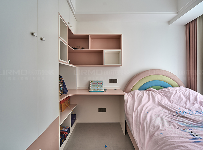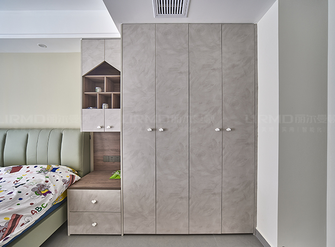 采用衣柜書桌一體設(shè)計,既能儲物又能學(xué)習(xí)。
