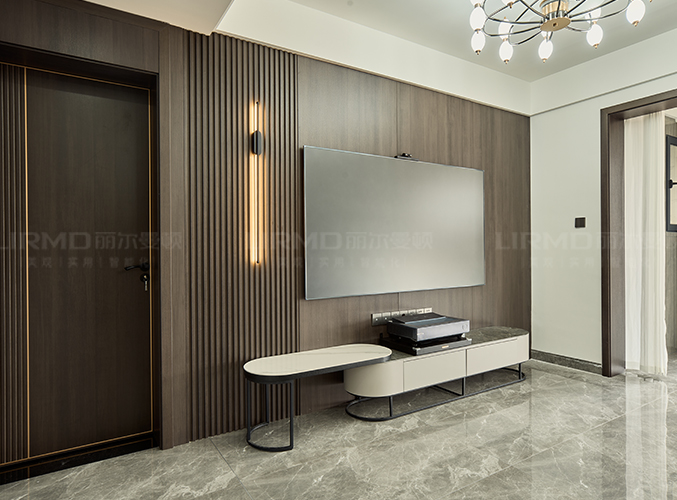 整屋通鋪瓷磚,明亮又顯大,視覺上更加干凈整潔,木飾面電視背景墻,增加整體的格調,