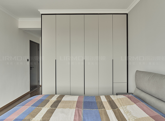 18mm厚杉木芯板,一門到頂柜子,下方懸空設計,好放置鞋子,中間內嵌設計,