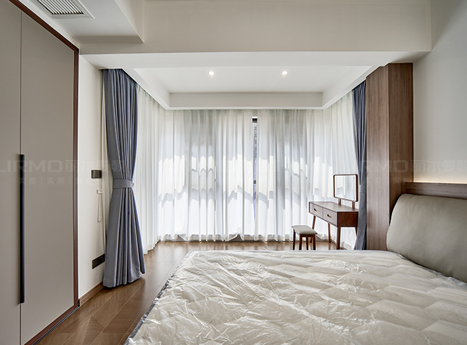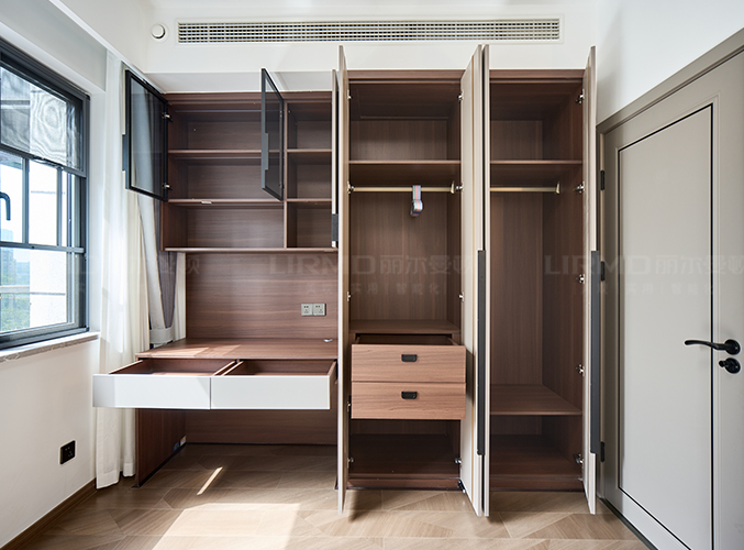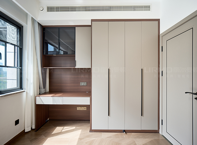 滿墻衣柜+同色系背景墻,超大陽臺放置梳妝臺采光一流,衣柜+書桌一體設(shè)計,儲物學(xué)習(xí)更方便。