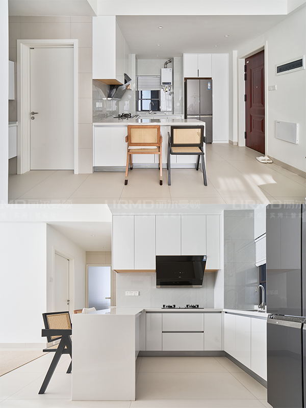 所以,設計師在軟裝上,融合了少量深色和藤編材質,提升整個空間的質感和格調。