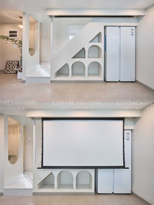投影儀幕布背景設計了拱形展示架,即美觀又實用