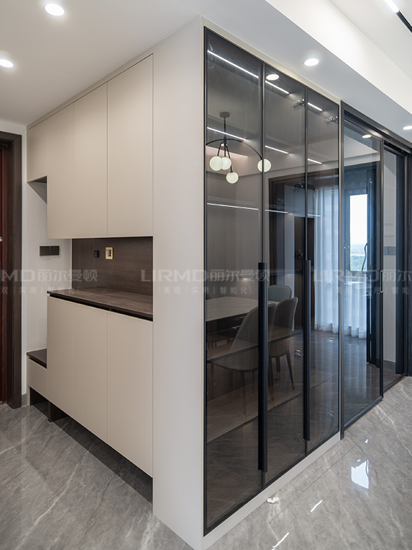 全屋定制:做了14個柜子(入戶鞋柜、玻璃酒柜、挑空電視機柜、陽臺洗衣柜、開放式書柜、