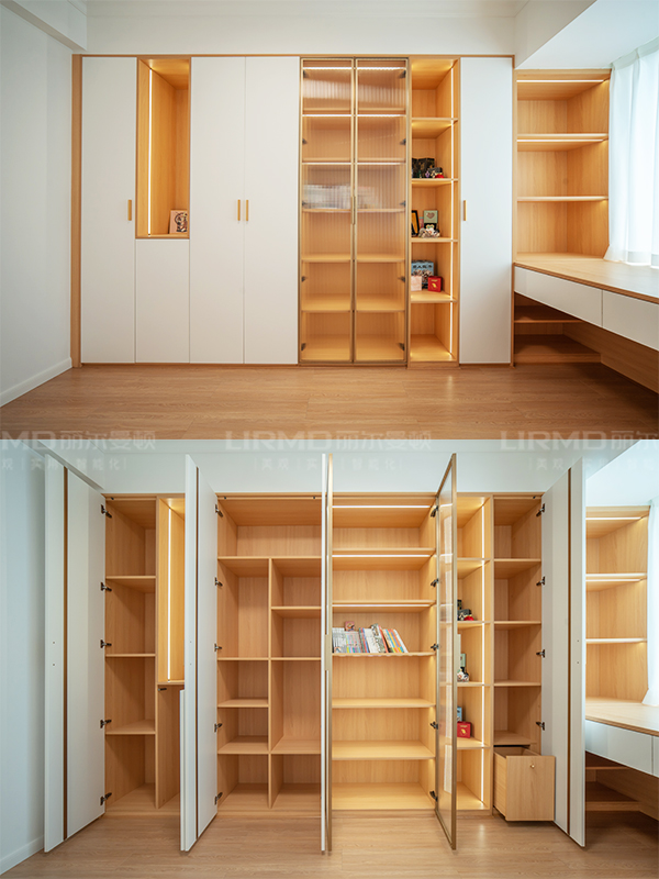 陽臺洗衣機柜、L型櫥柜、兩個主臥衣柜、次臥衣柜、書房書柜、書房手辦收納柜、