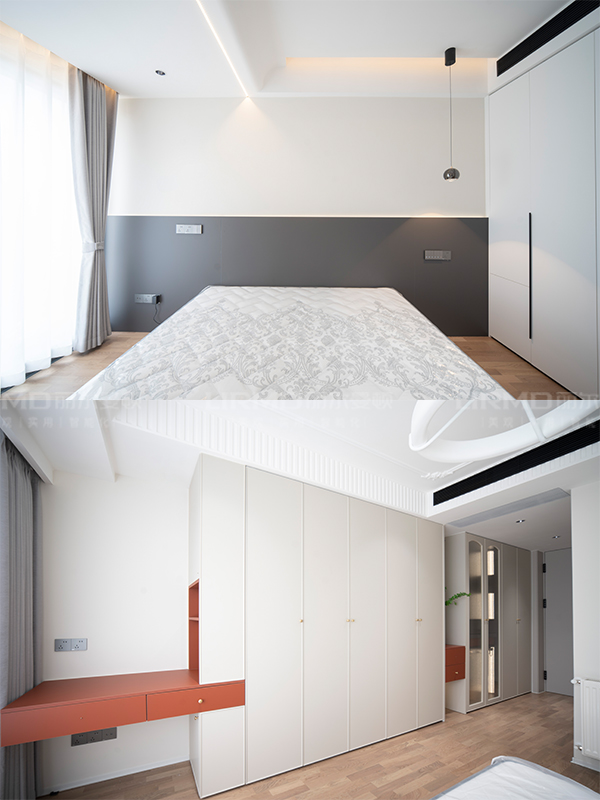 全屋高端定制:柜體板材18厚杉木實芯板,柜門有pet膚感、高光、超晶、五金使用原裝進口奧地利百隆五金