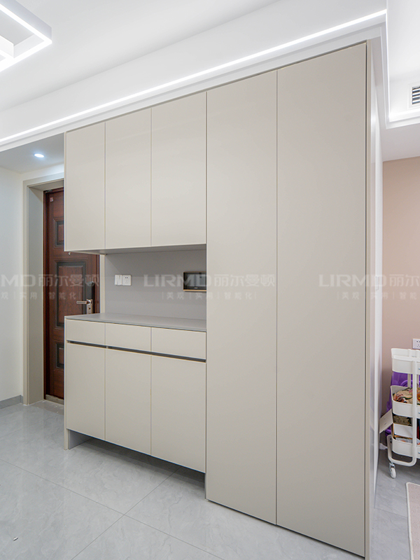柜體采用18厚杉木芯板,柜門采用歐松板PET膚感柜門,