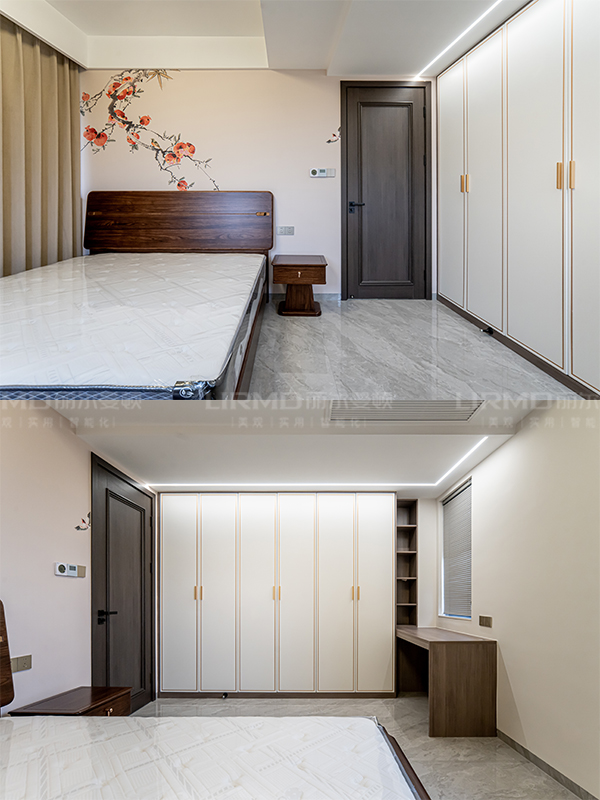 長沙靠譜裝修公司,長沙靠譜全屋定制,臥室衣柜加梳妝臺,新中式風,