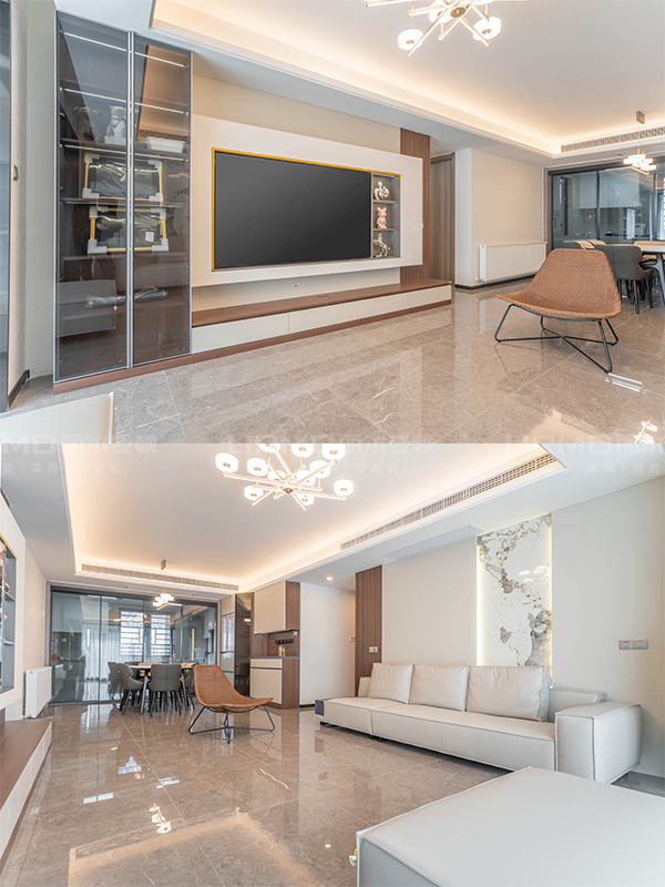 玻璃柜門元素的融入,減少厚重感,增加層次感