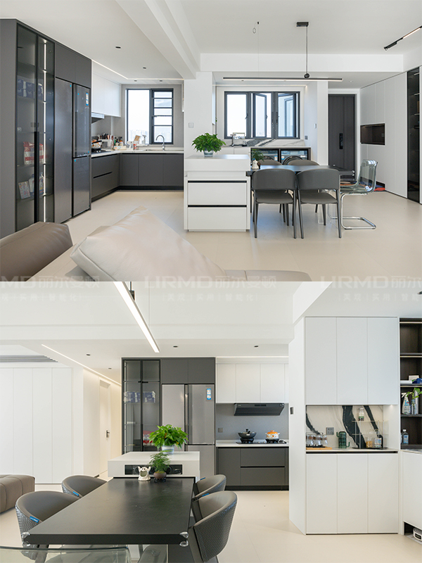 客餐廳、陽臺、廚房、書房四合一設計,高效利用收納空間。