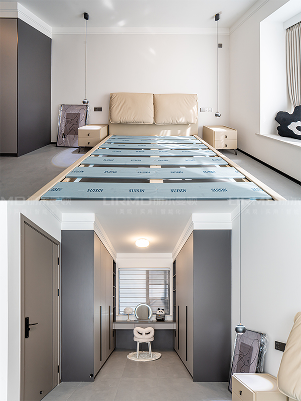 長沙靠譜裝修公司,長沙靠譜全屋定制,臥室衣柜加梳妝臺,現代風,