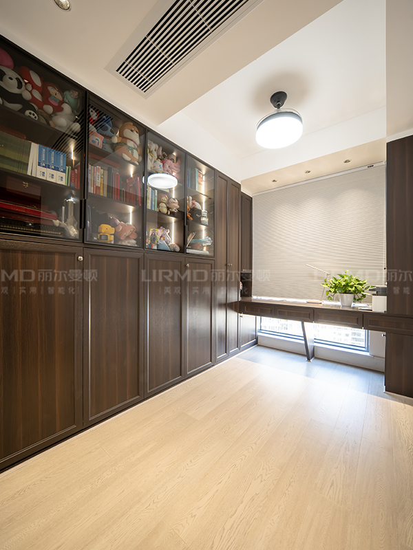 書柜煙熏橡木造型門與玻璃柜相結合,東方傳統元素與現代主義的碰撞也太好看了,