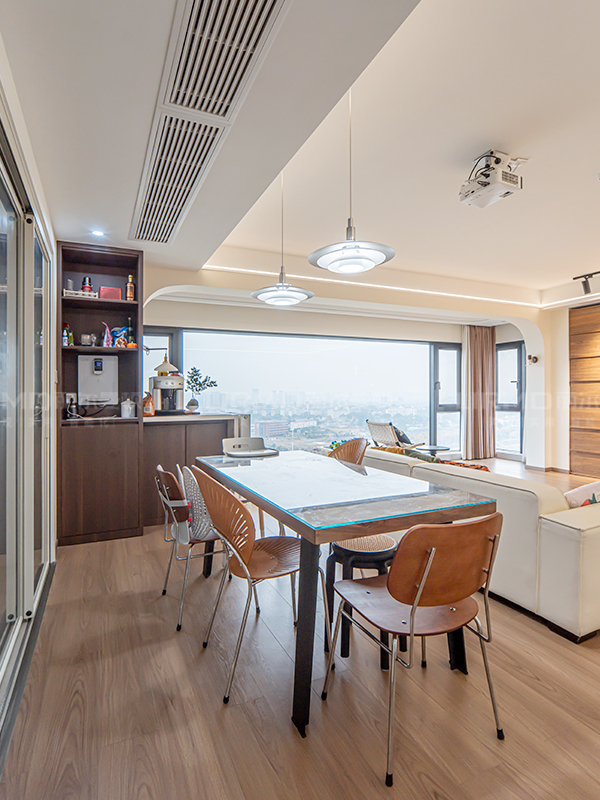 全屋通鋪木地板,搭配極簡茶幾,更有中古的氛圍感