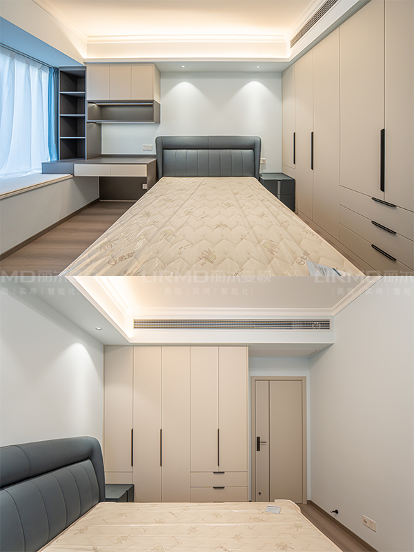 長沙靠譜裝修公司,長沙靠譜全屋定制,臥室衣柜加梳妝臺,現代簡約風,