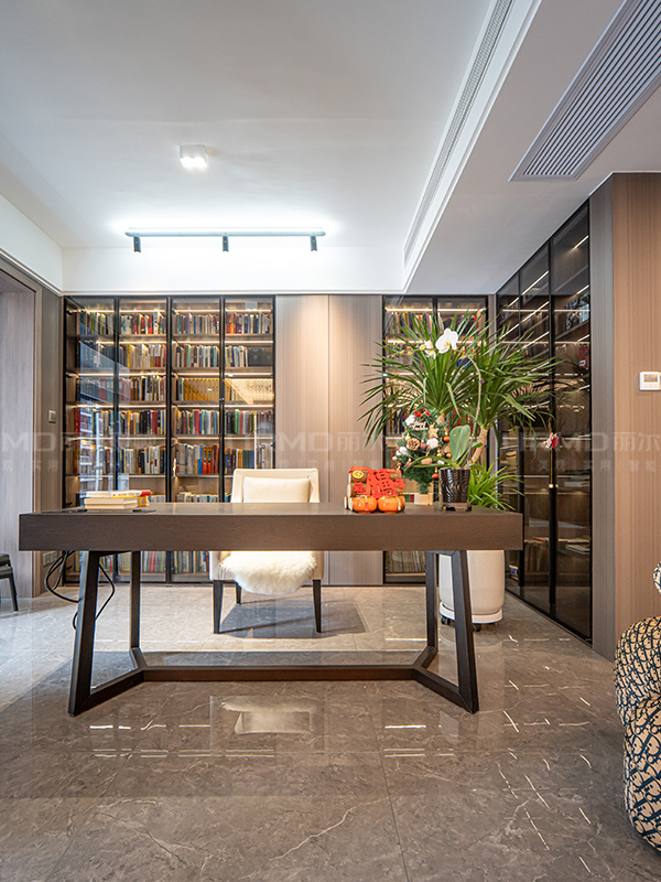 房客廳一體設(shè)計(jì),空間通透明亮又舒適,整墻書柜滿滿的書香氣,辦公學(xué)習(xí)都毫無(wú)壓力