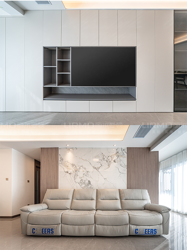 滿墻電視柜+餐邊柜,時尚大方干凈清爽,兼顧了顏值與實用性