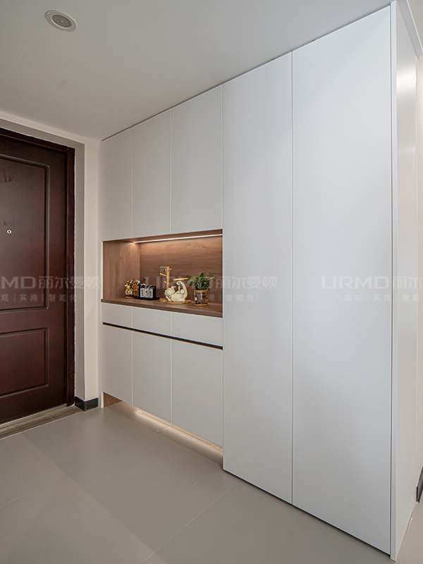 淺色與深色碰撞搭配,全房采用淺色系柜門,深色系家具搭配,增強空間的立體感