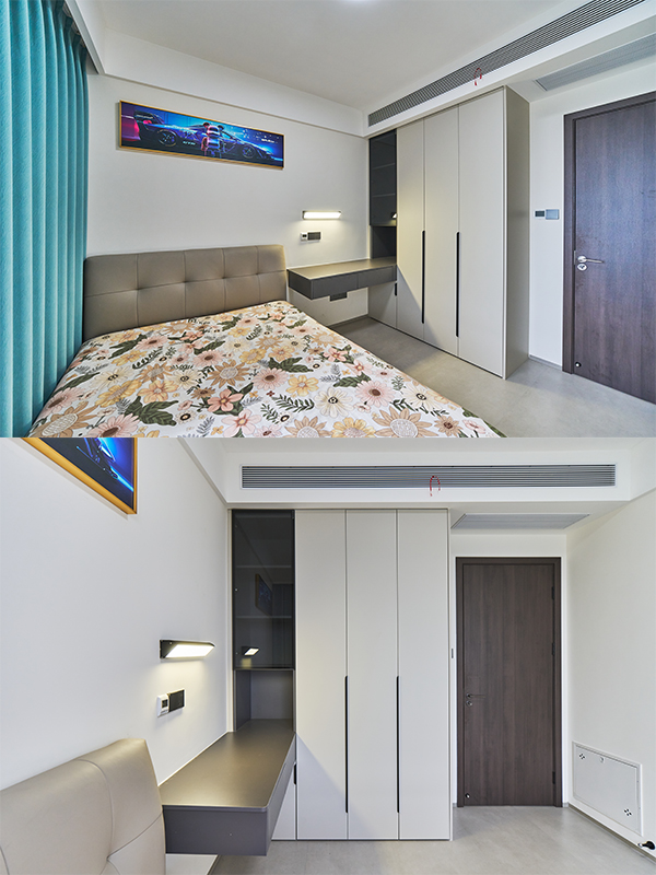 長沙靠譜裝修公司,長沙靠譜全屋定制,臥室衣柜加梳妝臺,現代極簡風,