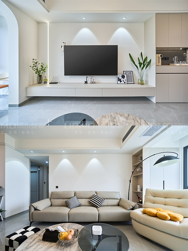 以膚感為主要材質與燈光完美結合,呈現出空間層次舒適感