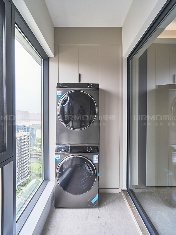 整體定制柜顏色選用濟州灰加象牙灰的撞色搭配,讓整體顏色更加自然清新