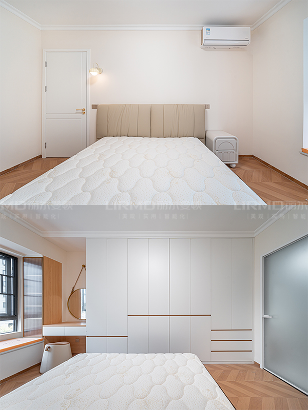 追求自然原始的質感,使用原木地板,并通過通鋪方式擴大視覺延伸感
