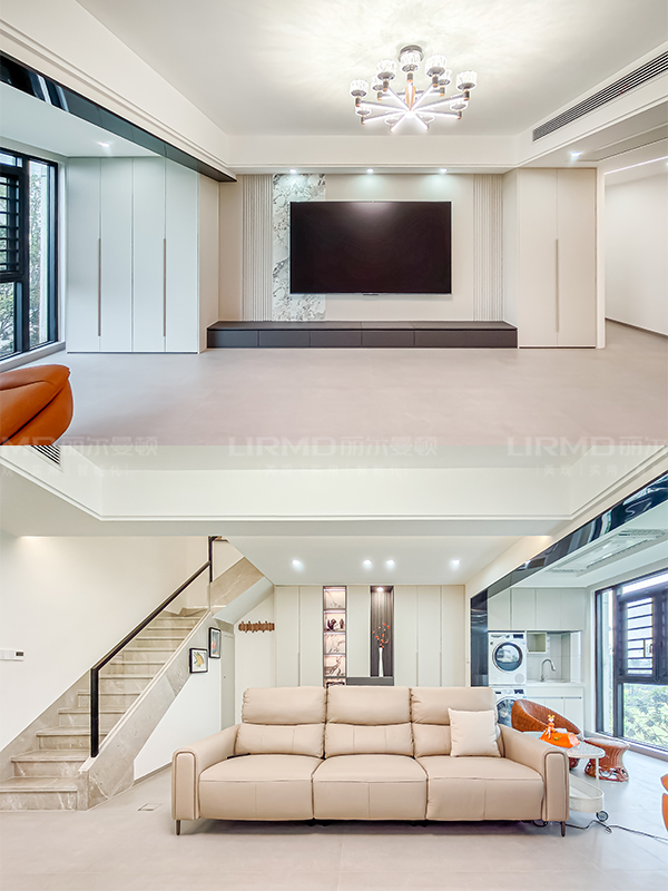 全屋做極簡風設計,簡單清爽的簡約風,通鋪 1500×750瓷磚,空間干凈簡約又顯大