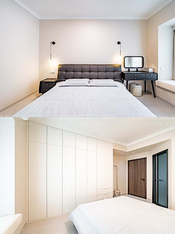 主臥床尾做滿墻到頂衣柜,收納力剛剛的!進門空間直接放可移動掛衣桿,方便放次凈衣。