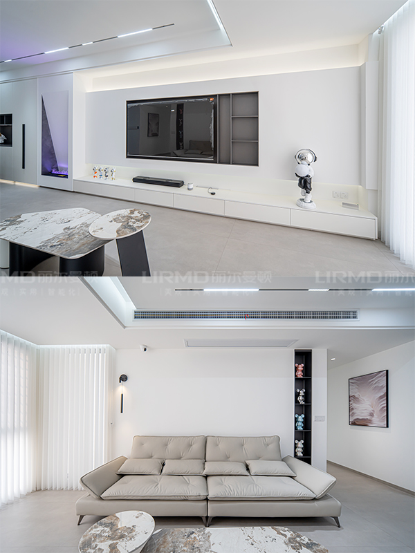 無主燈搭配雙眼皮吊頂設計,推掉陽臺做一體化設計,顯大又高級