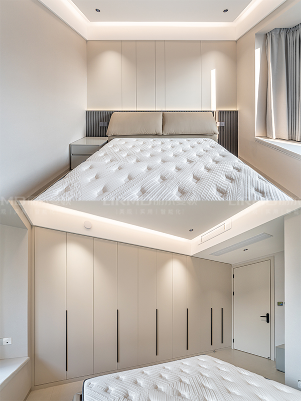 全房無主燈設計,將現代輕奢精髓發揮極致。點光源+線性燈帶搭配,照明均勻而充足,浪漫溫馨。