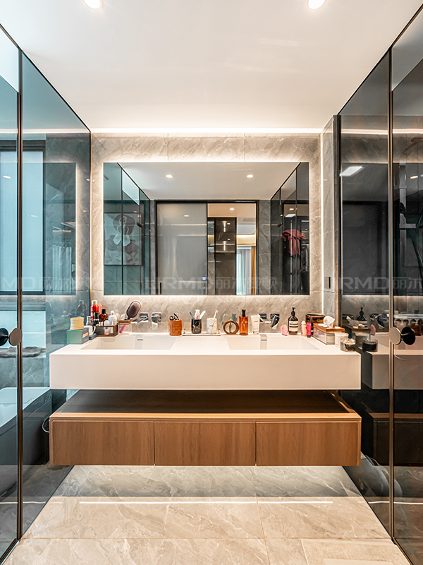 運用木飾、石材、玻璃等材質,打造極簡與輕奢的精致空間。
