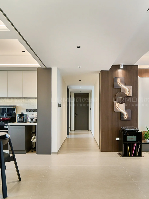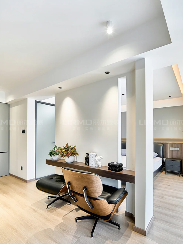 隱形設(shè)計(jì):所有門套、踢腳線做極簡收口,連空調(diào)風(fēng)口都定制同色格柵,強(qiáng)迫癥狂喜
